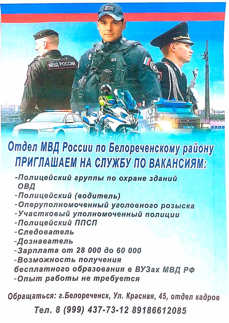 Отдел МВД приглашает на службу по вакансиям